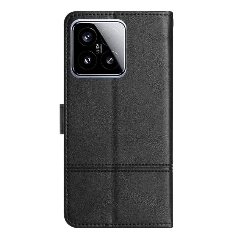 Για Xiaomi 15 Cowhide υφή ραφή δέρμα τηλέφωνο υπόθεση (μαύρο)