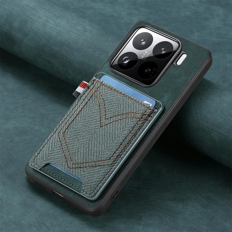 Για Xiaomi 15 Denim Υφή δέρμα δέρμα τηλέφωνο υπόθεση με υποδοχή κάρτας (πράσινο)