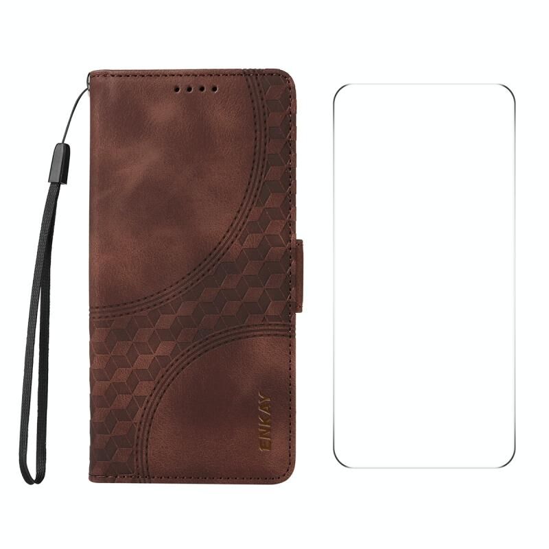 Θήκη κινητού τηλεφώνου Xiaomi 15 ENKAY με ανάγλυφο ρόμβο και δέρμα με αστρικό σχέδιο, με προστατευτική μεμβράνη οθόνης (Πράσινο) (ENKAY)