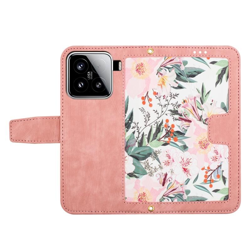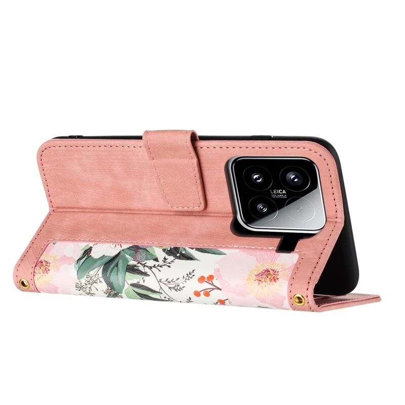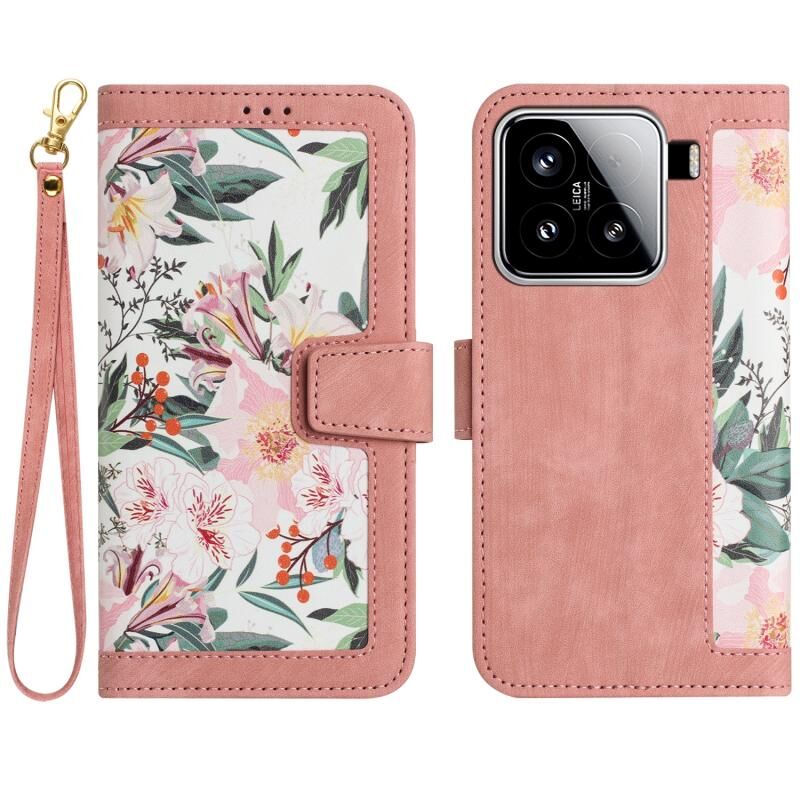 Θήκη τηλεφώνου Xiaomi 15 με λουλουδάτο σχέδιο από δέρμα με κορδόνι (ανοιχτό μωβ)