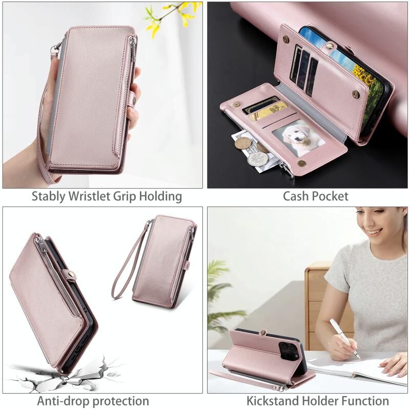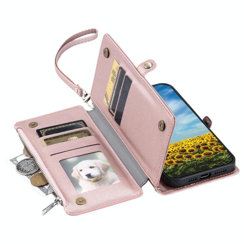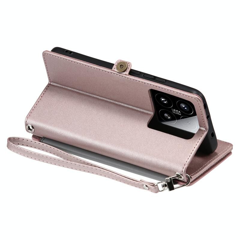 Για Xiaomi 15 Δερμάτινη ραφή Multi-card Slot φερμουάρ υπόθεση τηλεφώνου (Rose Gold)