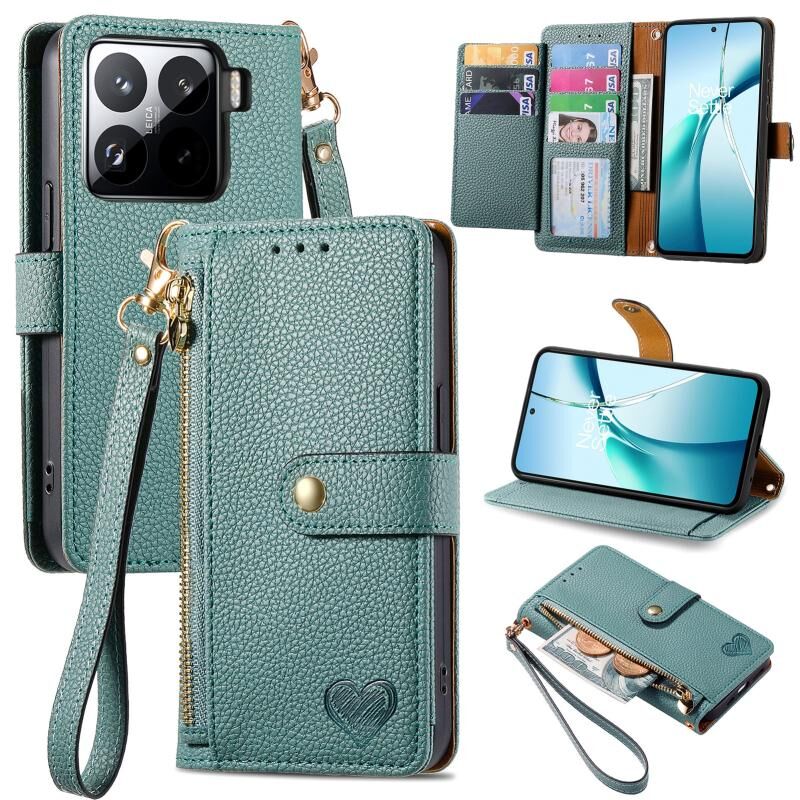 Για Xiaomi 15 αγάπη φερμουάρ φερμουάρ δερμάτινη θήκη τηλεφώνου (πράσινο)
