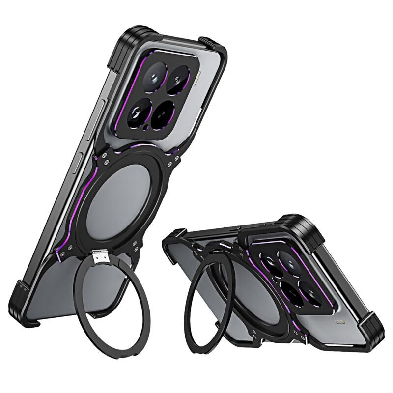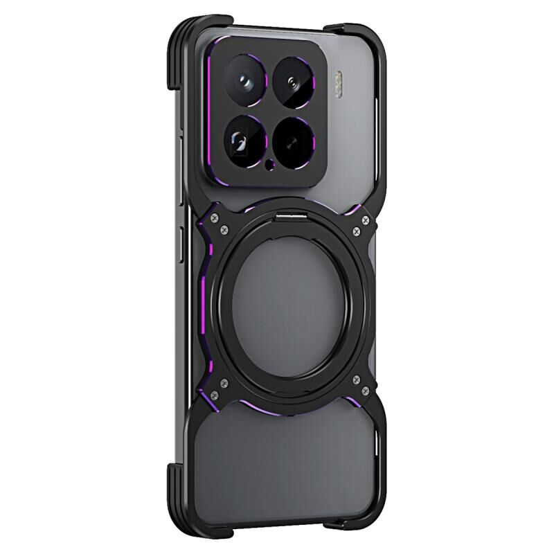 For Xiaomi 15 Mechanical Arm Borderless MagSafe Holder Metal Phone Case(Black Purple)