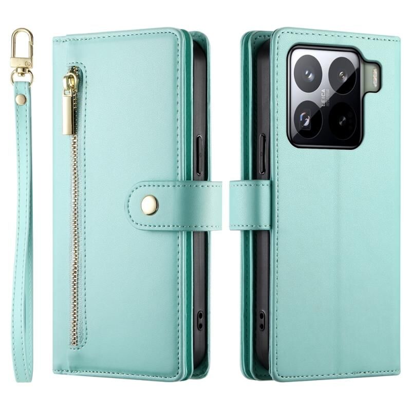 For Xiaomi 15 Nine Card-slot Zipper Wallet Bag Leather Phone Case(Mint Green)