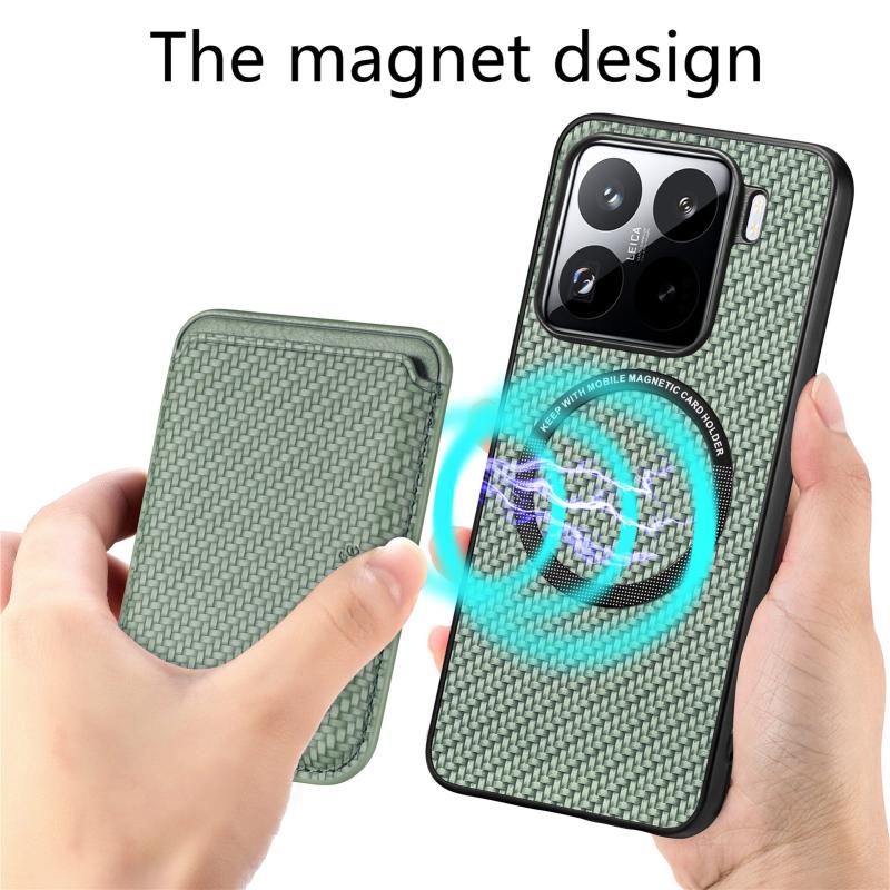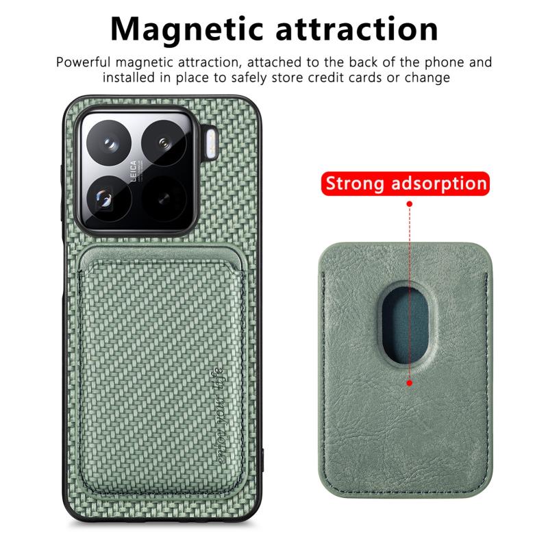 For Xiaomi 15 Pro Carbon Fiber Leather Card Magnetic Phone Case(Green)