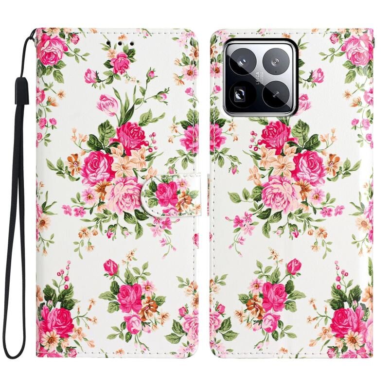 Θήκη τηλεφώνου από δέρμα με έγχρωμη σχεδίαση για Xiaomi 15 Pro (Παιώνιες)