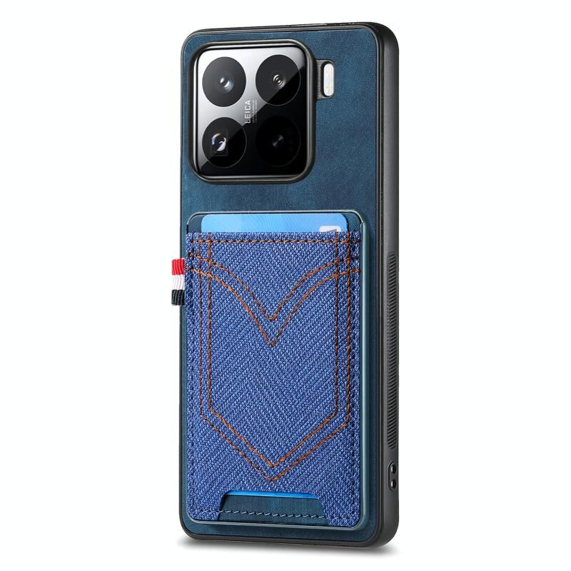 Για Xiaomi 15 Pro Denim Υφή δέρμα δέρμα τηλέφωνο υπόθεση με υποδοχή κάρτας (μπλε)