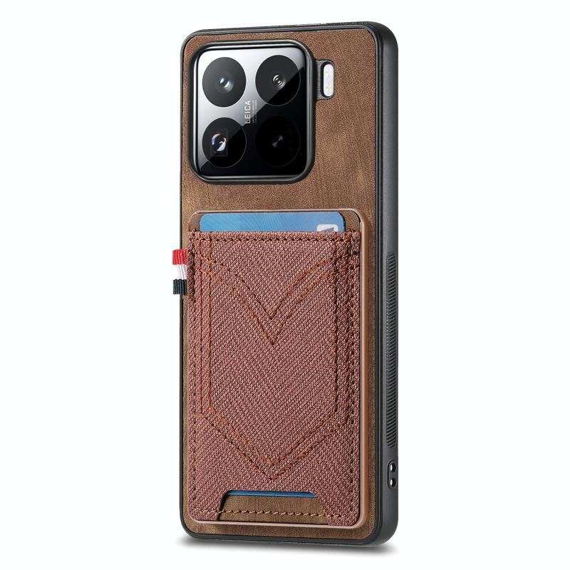 Για Xiaomi 15 Pro Denim Υφή δέρμα δέρμα τηλέφωνο υπόθεση με υποδοχή κάρτας (καφέ)