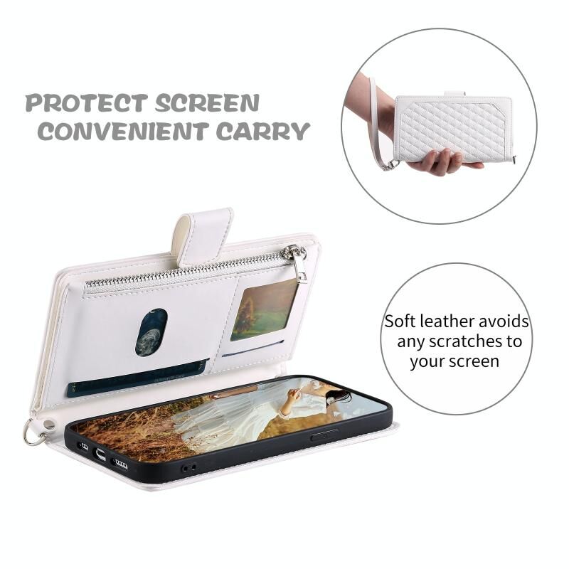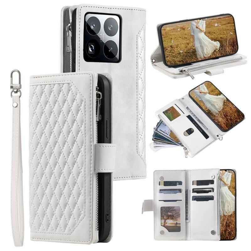 Για Xiaomi 15 Pro Πλέγμα υφή φερμουάρ δερμάτινη θήκη τηλεφώνου με κορδόνι (λευκό)
