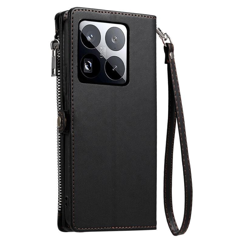 Για Xiaomi 15 Pro Δερμάτινη ραφή Multi-card Slot φερμουάρ υπόθεση τηλεφώνου (μαύρο)