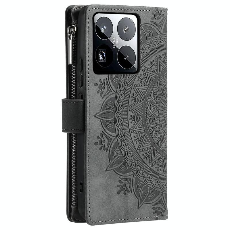 Για Xiaomi 15 Pro Multi-Card Totem φερμουάρ δερμάτινη θήκη τηλεφώνου (γκρι)