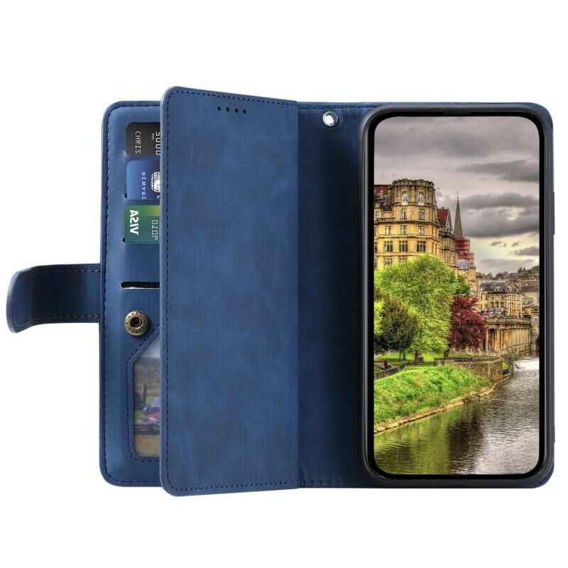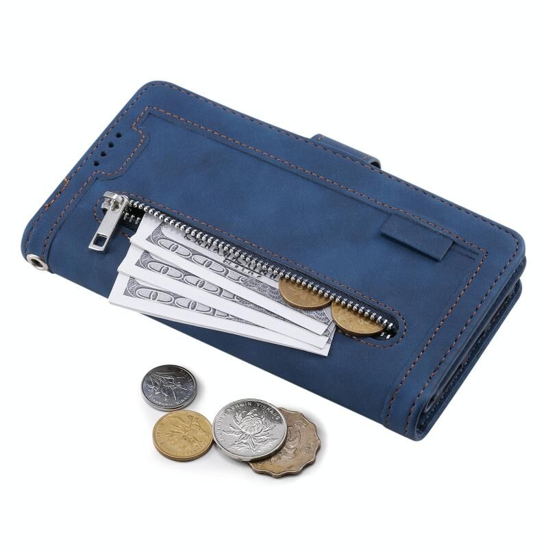 5. Πρακτική λειτουργία θήκης καρτών: Η υποδοχή κάρτας και η τσέπη πορτοφολιού με φερμουάρ και η θήκη μετρητών μπορούν να αποθηκεύσουν τις πιστωτικές σας κάρτες, τα μετρητά ή τα μικρά χαρτονομίσματα που χρειάζεστε καθημερινά.