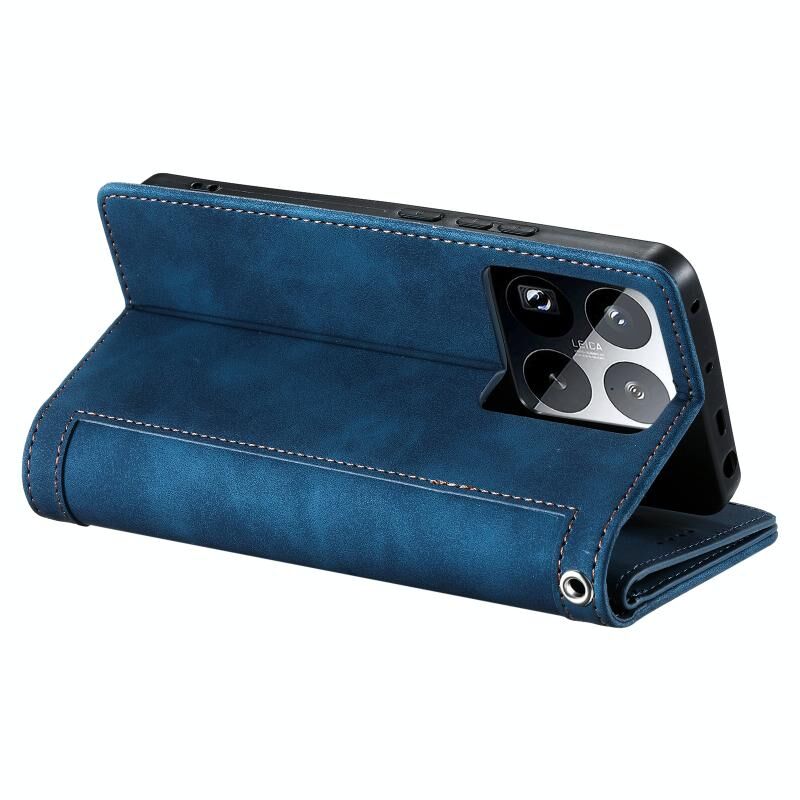 Για Xiaomi 15 Pro Nine κάρτα φερμουάρ τσάντα δερμάτινη θήκη τηλεφώνου με κορδόνι (μπλε)