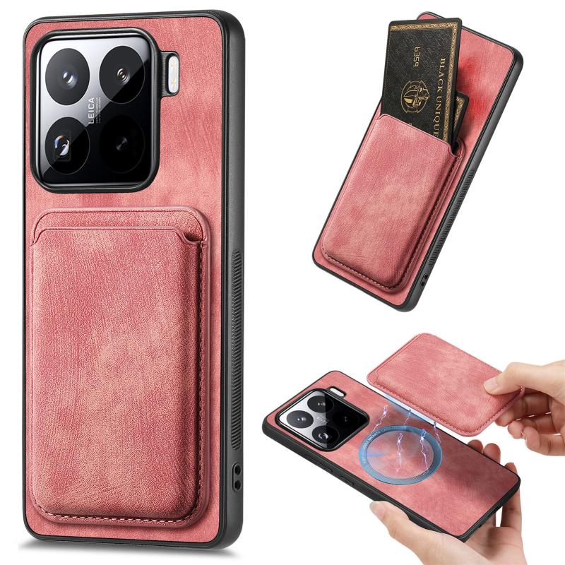 For Xiaomi 15 Pro Retro Leather Card Bag Magnetic Phone Case(Pink)