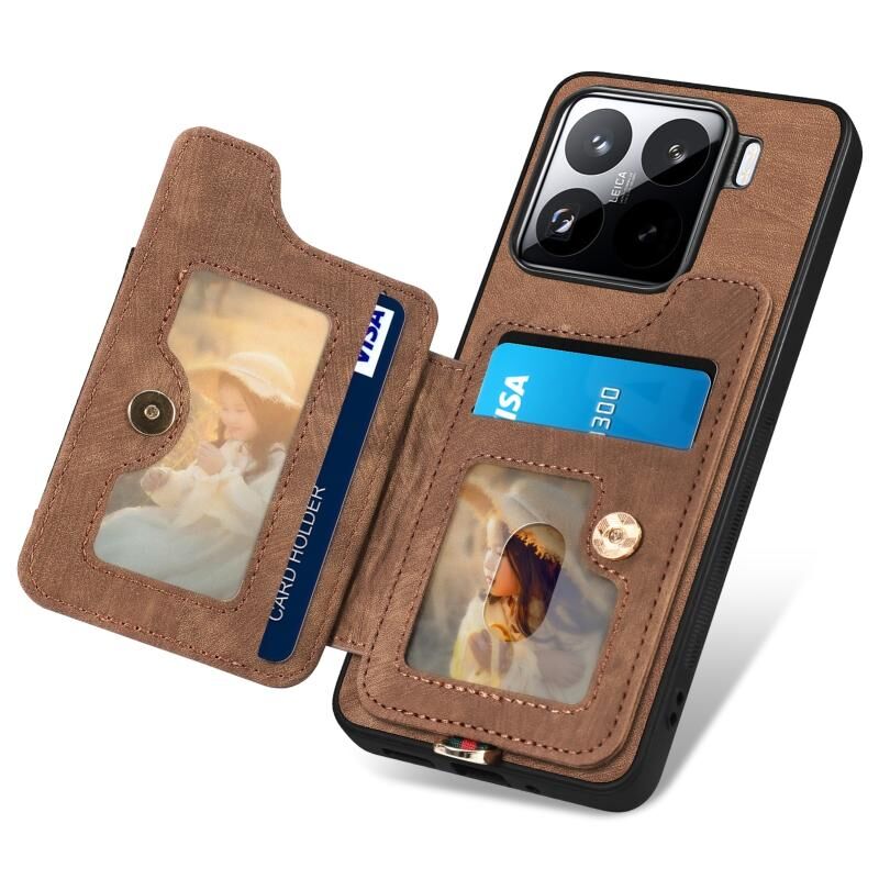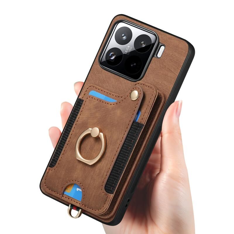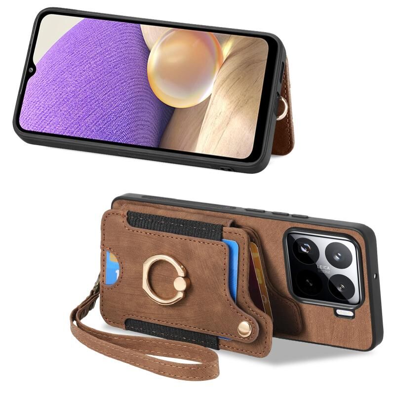 Για Xiaomi 15 Pro Ρετρό δέρμα αίσθηση δαχτυλίδι πολυ-κάρτα RFID πορτοφόλι υπόθεση τηλεφώνου (καφέ)