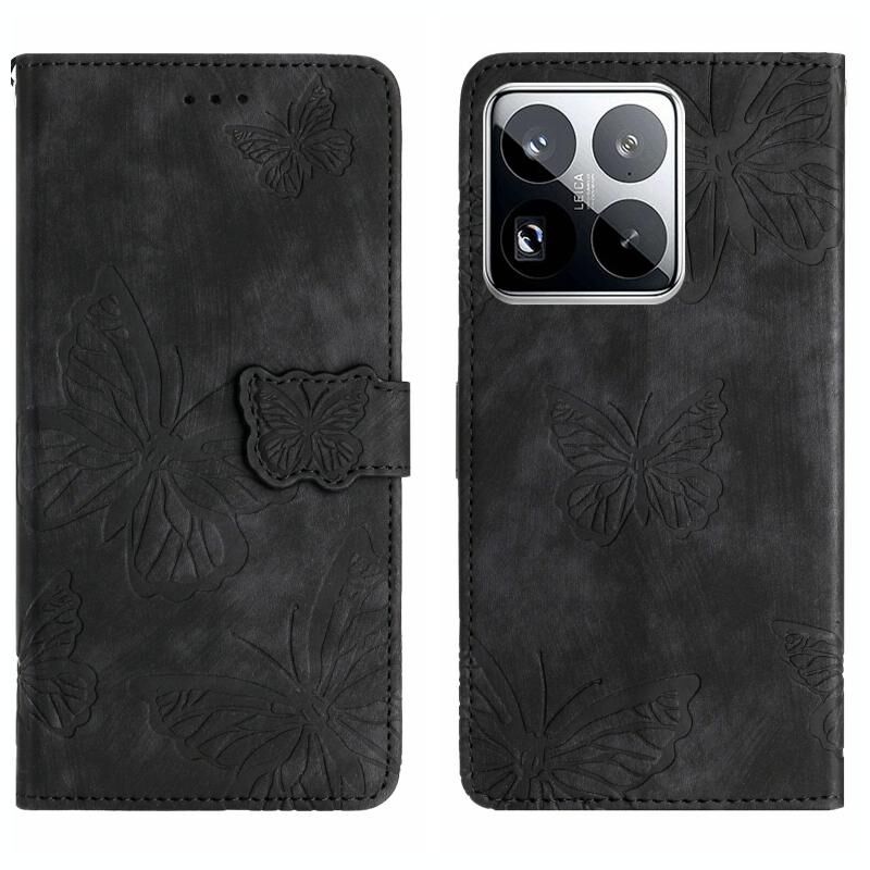 Θήκη τηλεφώνου Xiaomi 15 Pro με δερμάτινη υφή πεταλούδας (Μαύρο)