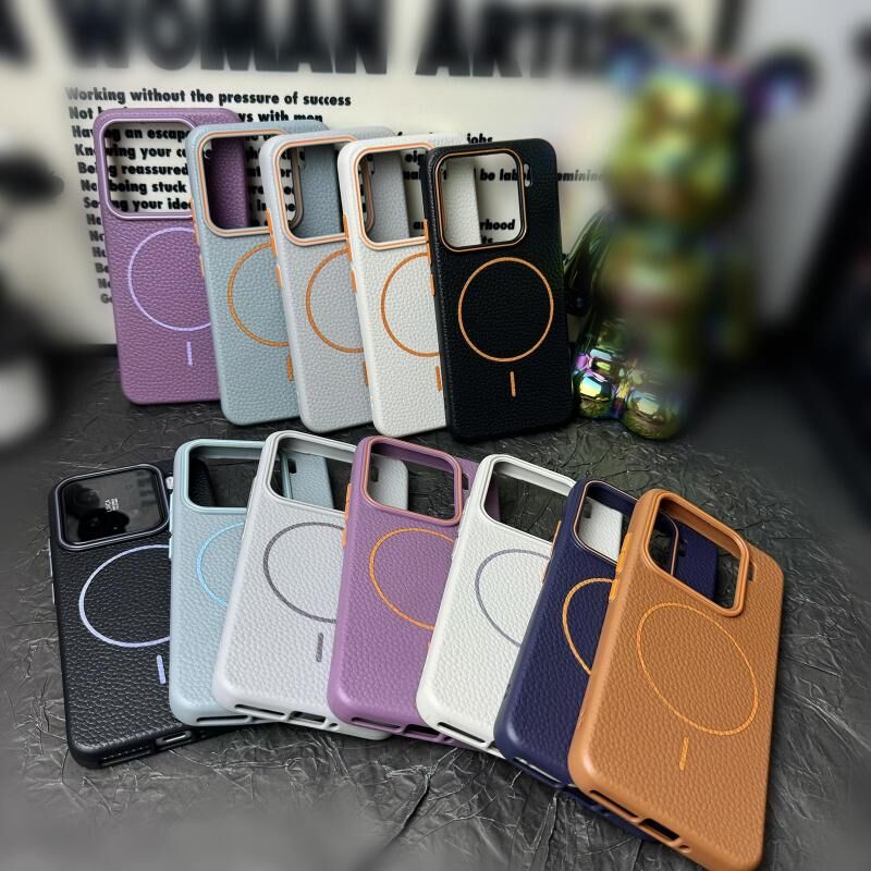 Θήκη τηλεφώνου Xiaomi 15 Pro Λεπτός Κύκλος MagSafe Δέρμα Λίτσι TPU (Λευκό Γκρι)
