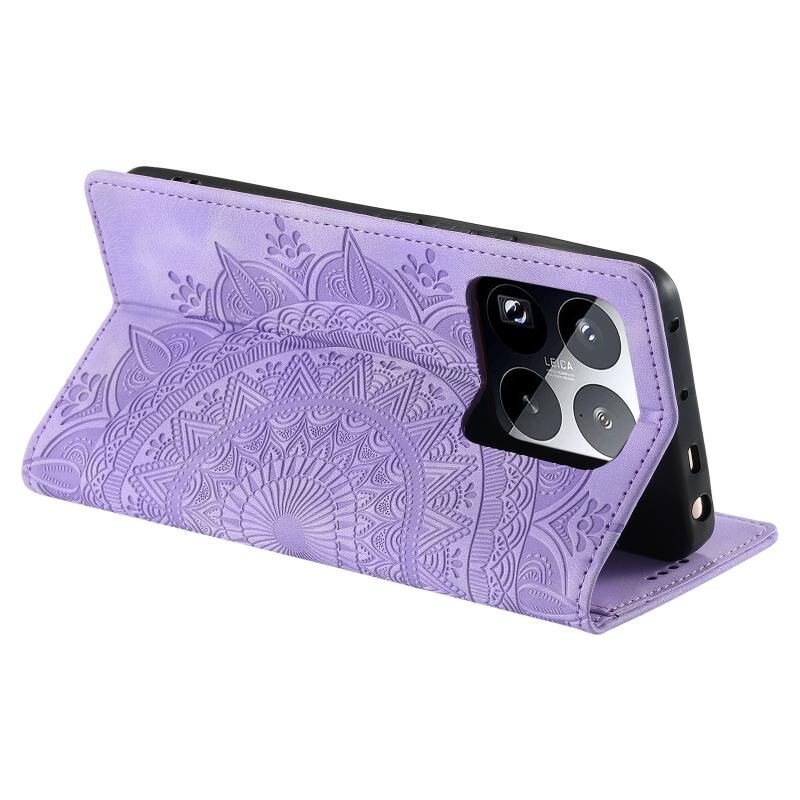 Για Xiaomi 15 Pro Totem ανάγλυφη μαγνητική δερμάτινη θήκη τηλεφώνου (μωβ)