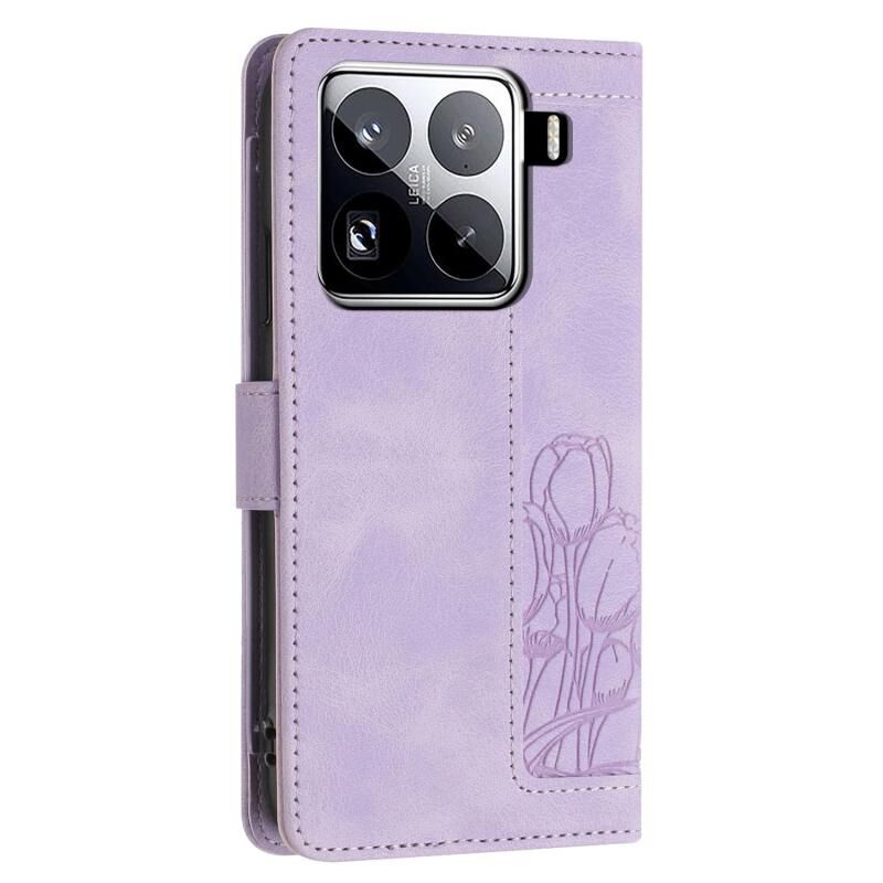 Θήκη τηλεφώνου Xiaomi 15 Pro με ανάγλυφο δέρμα τουλίπας και κορδόνι (Μωβ)