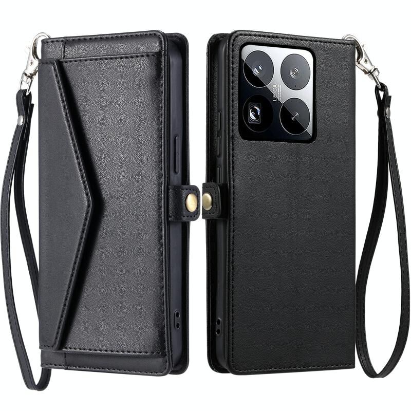 Για Xiaomi 15 Pro Πορτοφόλι Multi-card Slot Δερμάτινη θήκη τηλεφώνου με κορδόνι (Μαύρο)