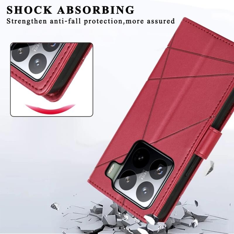 For Xiaomi 15 PU Genuine Leather Texture Embossed Line Phone Case(Red)