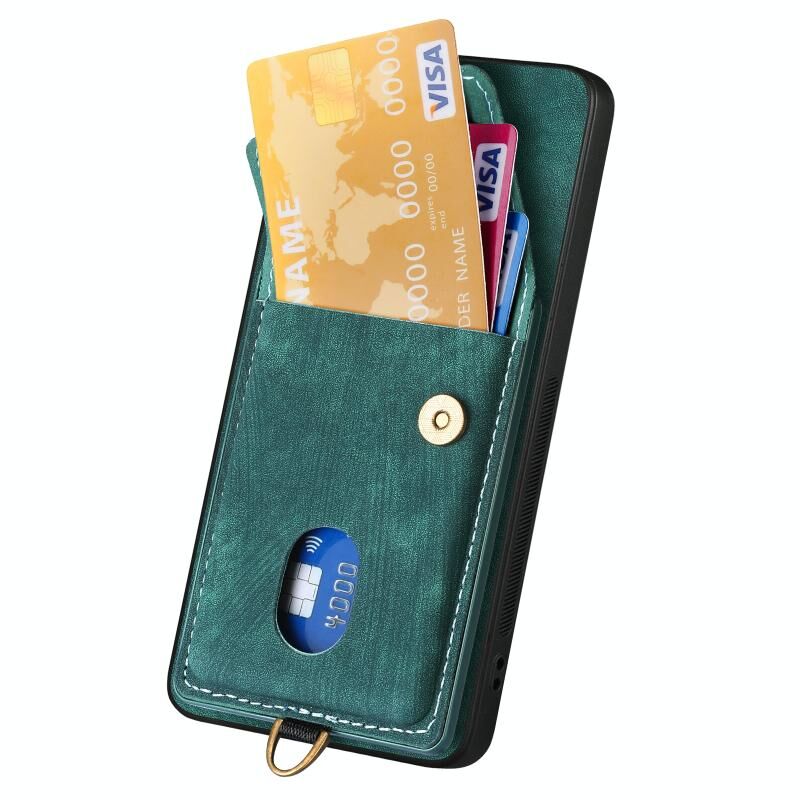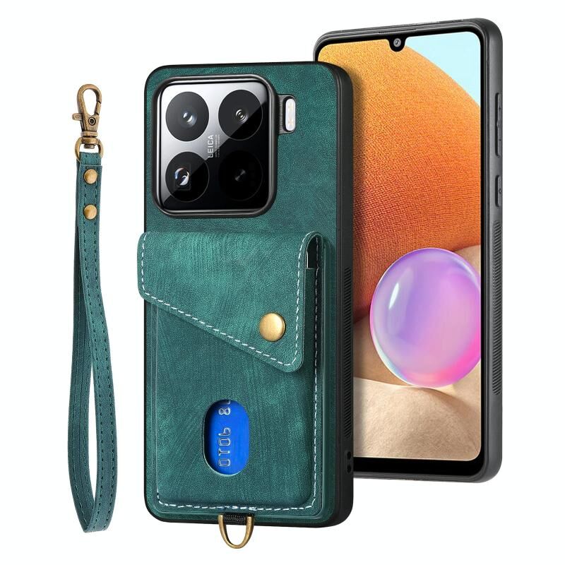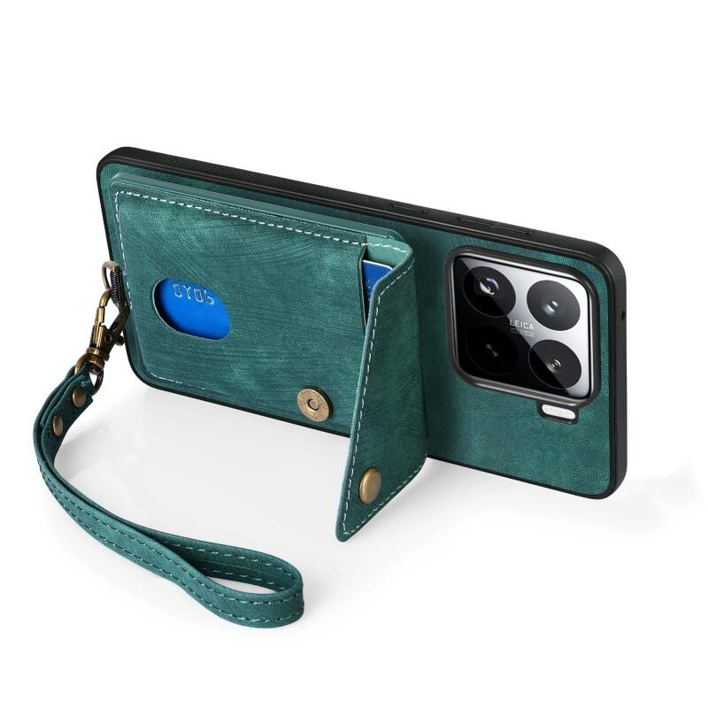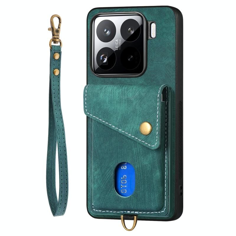 Για Xiaomi 15 Ρετρό κάρτα πορτοφόλι πτυσσόμενο δερμάτινη θήκη τηλεφώνου με λουράκι (πράσινο)