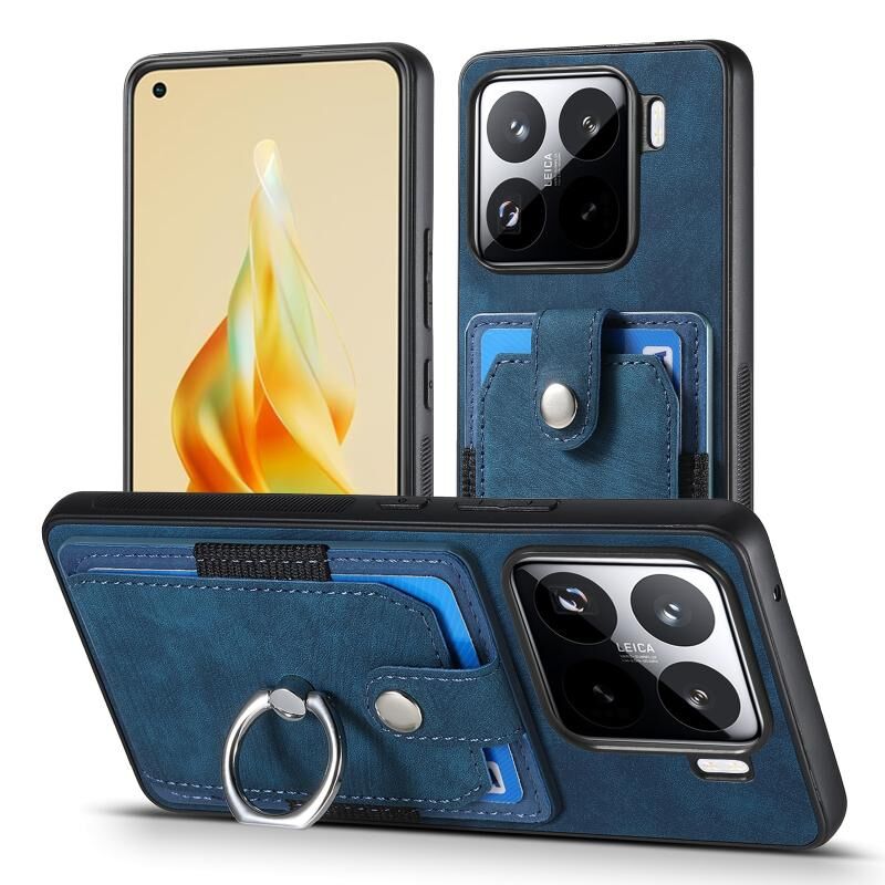 Για Xiaomi 15 Ρετρό δέρμα αίσθηση δαχτυλίδι κάρτα πορτοφόλι υπόθεση τηλεφώνου (μπλε)
