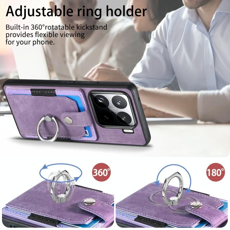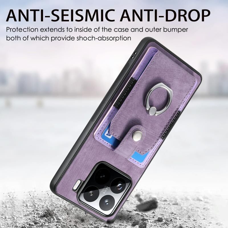 Για Xiaomi 15 Ρετρό δέρμα αίσθηση δαχτυλίδι κάρτα πορτοφόλι υπόθεση τηλεφώνου (μωβ)