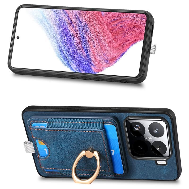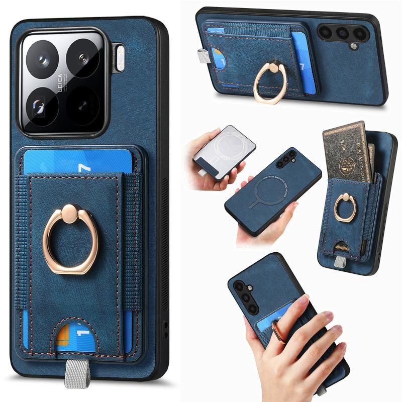 Για Xiaomi 15 Ρετρό Splitable μαγνητική κάρτα τσάντα δερμάτινη θήκη τηλεφώνου (μπλε)