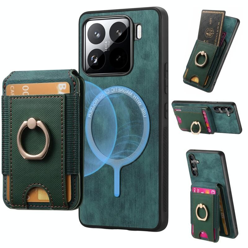 Για Xiaomi 15 Ρετρό Splitable μαγνητική Stand κάρτα τσάντα δερμάτινη θήκη τηλεφώνου (πράσινο)
