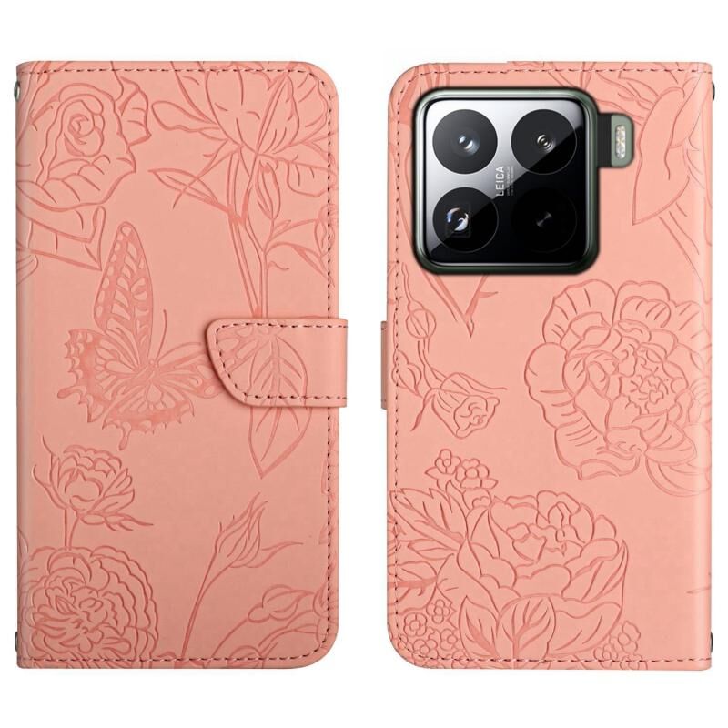 For Xiaomi 15 Skin Feel Butterfly Embossed Flip Leather Phone Case(Pink)