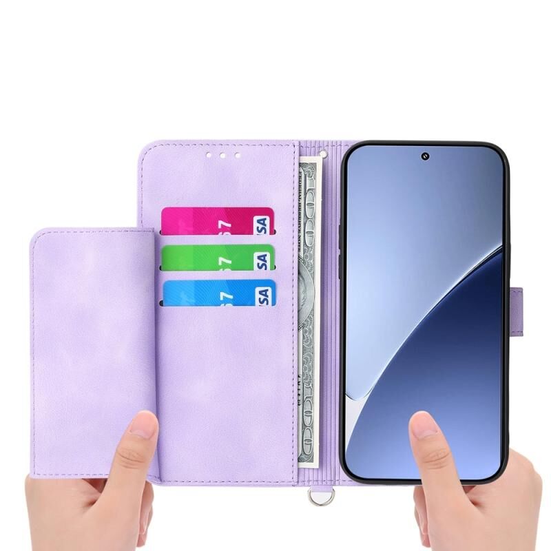 Θήκη τηλεφώνου από δέρμα με ανάγλυφα λουλούδια και αίσθηση δέρματος για Xiaomi 15 (Μωβ)