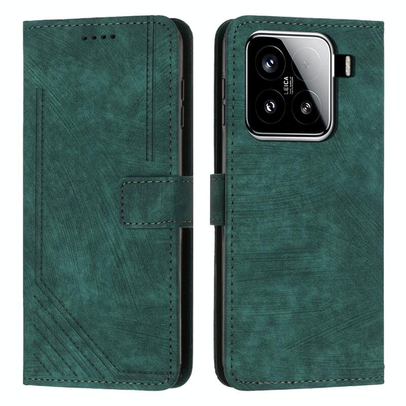 Για Xiaomi 15 δέρμα Feel ριγέ μοτίβο δερμάτινη θήκη τηλεφώνου με κορδόνι (πράσινο)