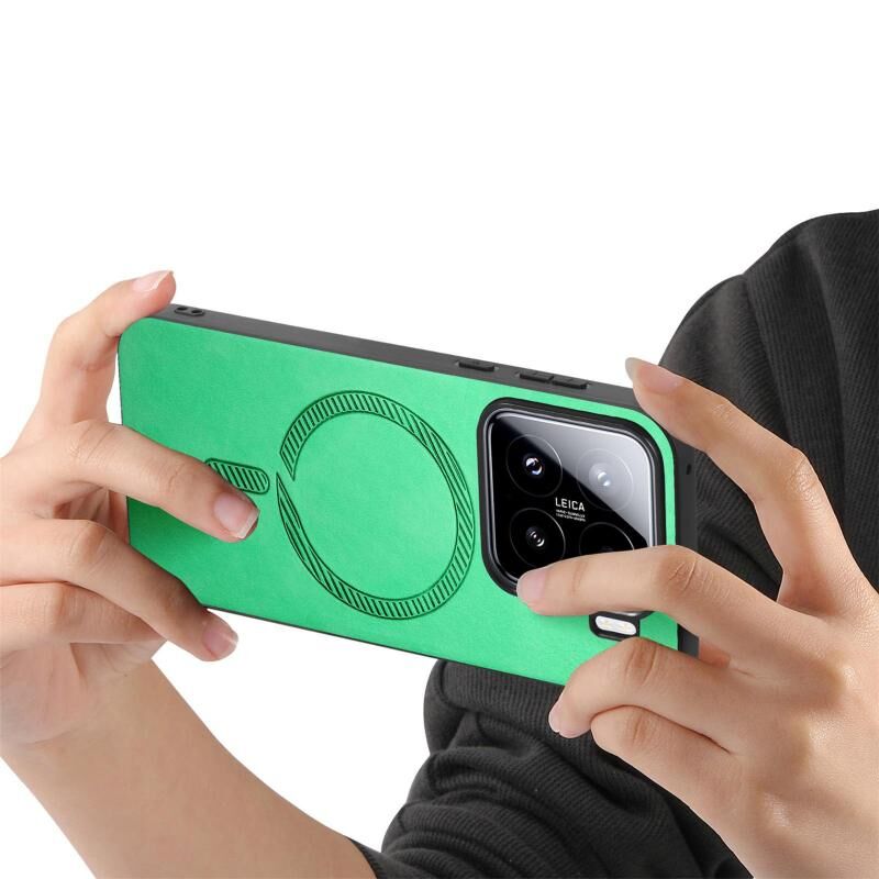 Θήκη τηλεφώνου για Xiaomi 15, μονόχρωμη, ρετρό, με μαγνητική σύνδεση Magsafe, από PU (κίτρινο)