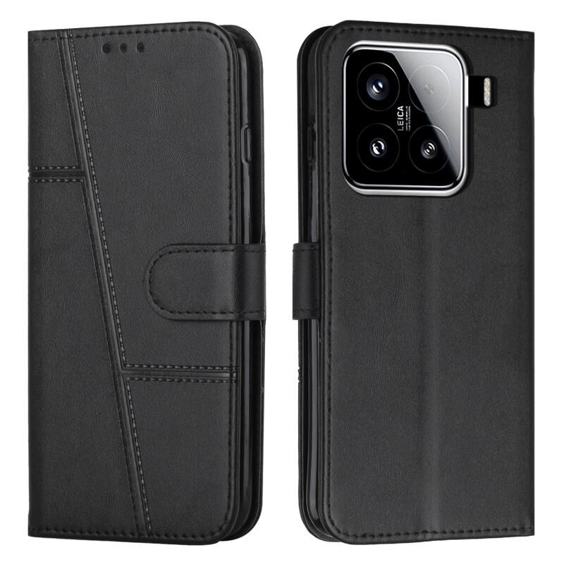 For Xiaomi 15 Stitching Calf Texture Buckle Leather Phone Case(Black)