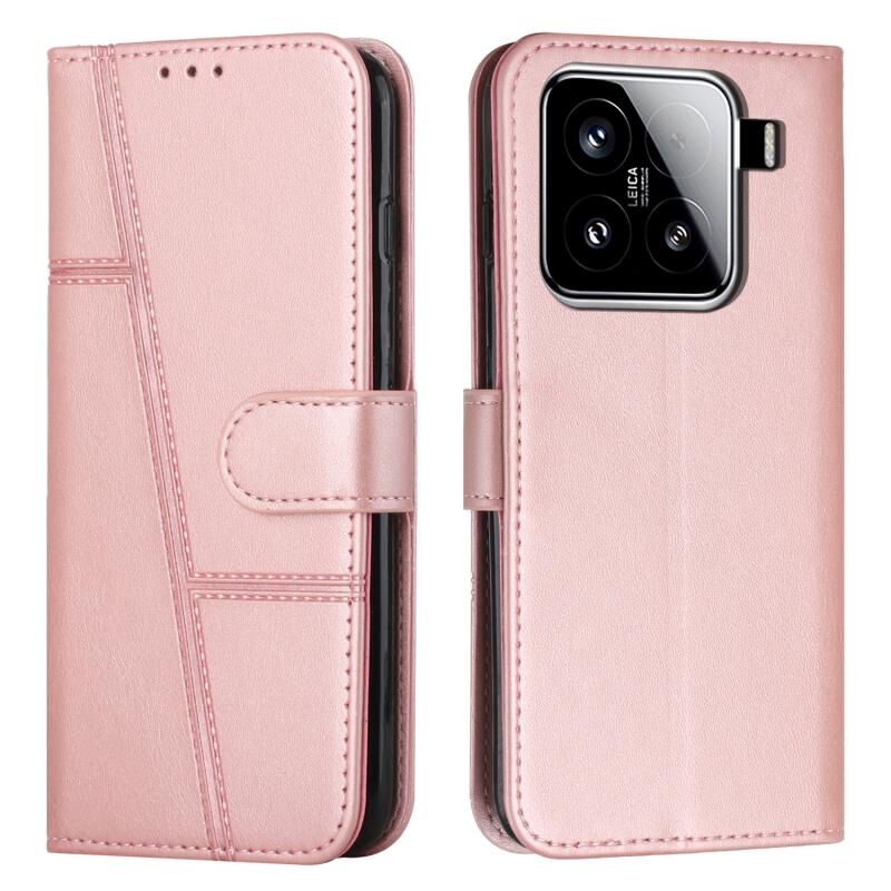 For Xiaomi 15 Stitching Calf Texture Buckle Leather Phone Case(Rose Gold)