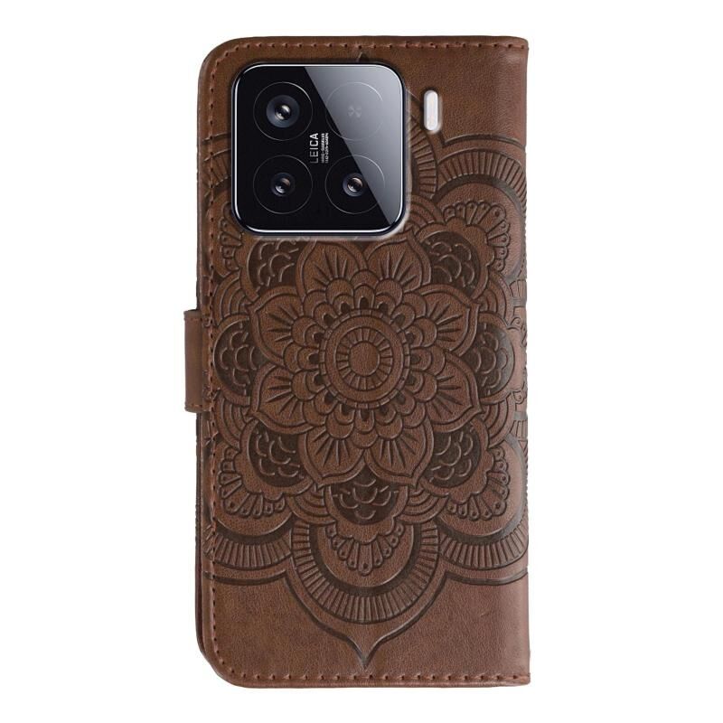 Θήκη δερμάτινη για Xiaomi 15 με ανάγλυφο σχέδιο Sun Mandala (Κόκκινη)