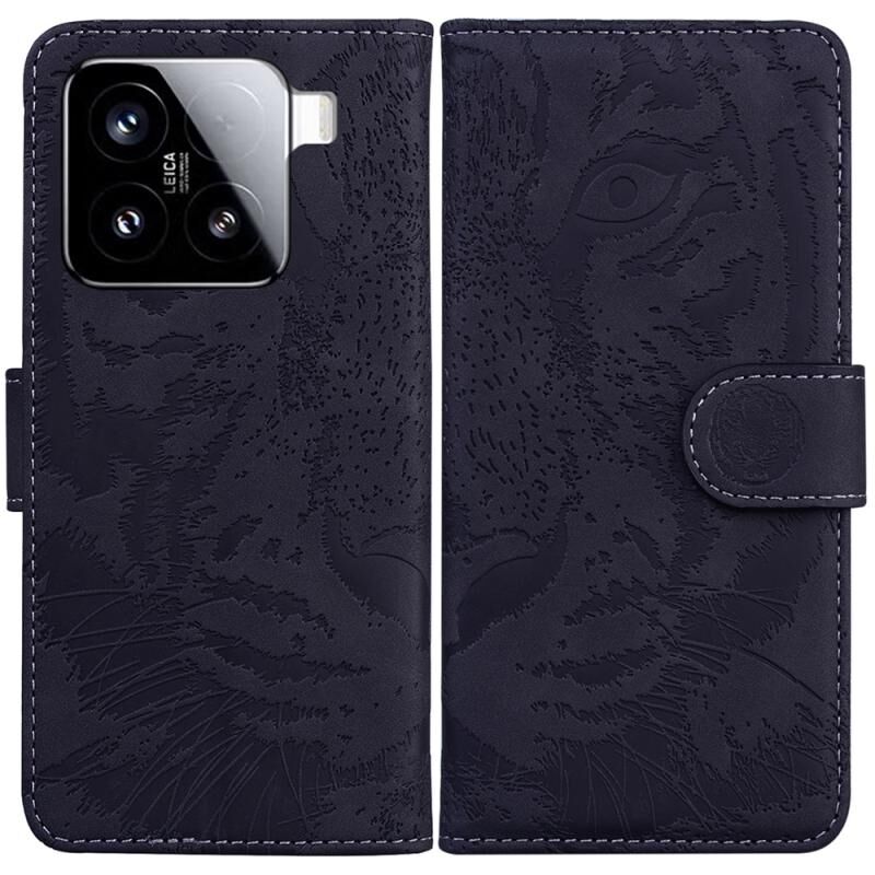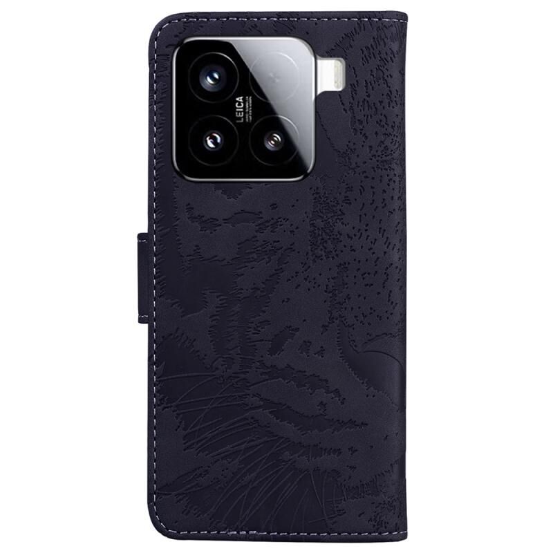 Θήκη τηλεφώνου από δέρμα με σχέδιο τίγρης σε ανάγλυφο για Xiaomi 15 (Μαύρο)