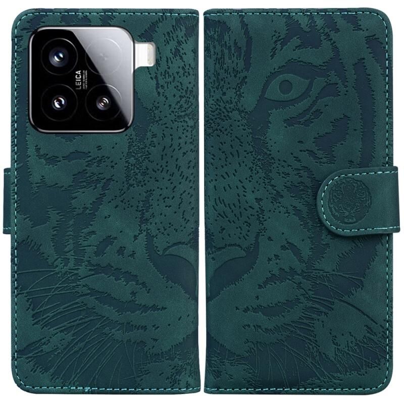 For Xiaomi 15 Tiger Embossing Pattern Flip Leather Phone Case(Green)