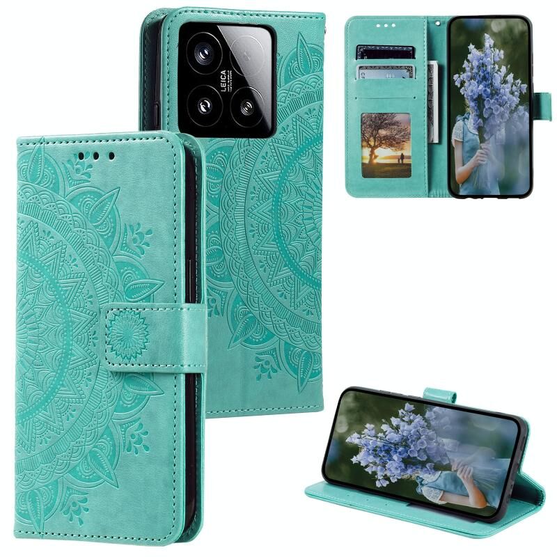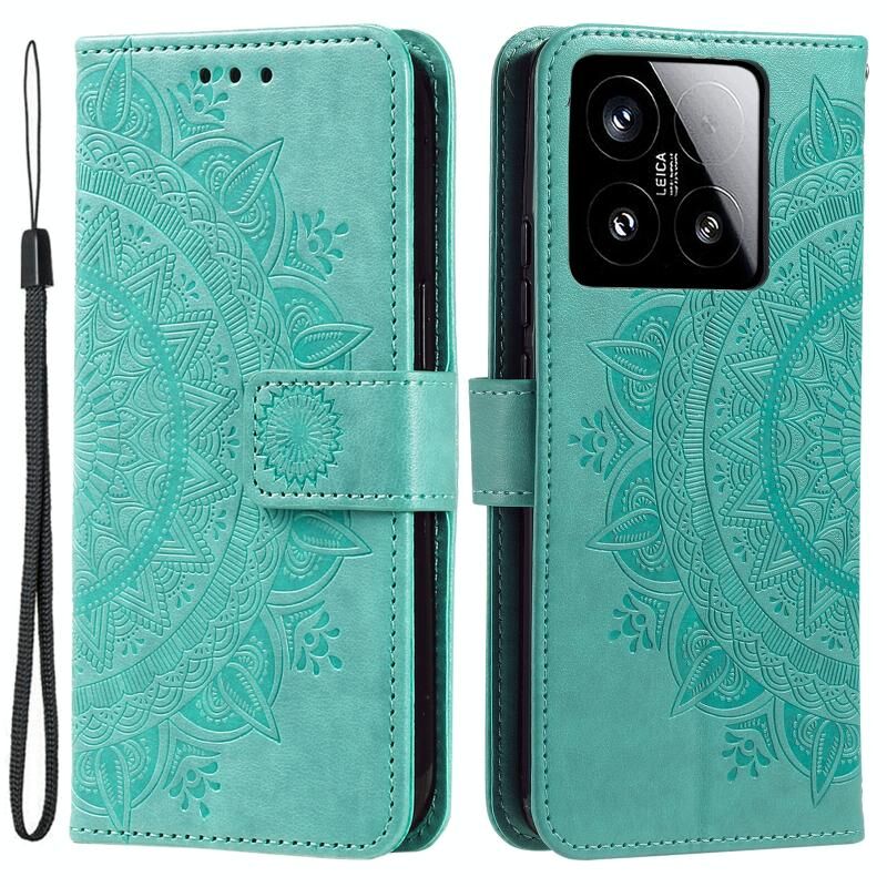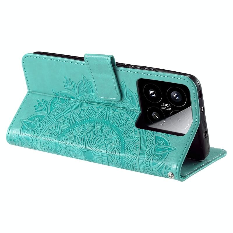 Για Xiaomi 15 Totem λουλούδι ανάγλυφο δερμάτινη θήκη τηλεφώνου με κορδόνι (πράσινο)