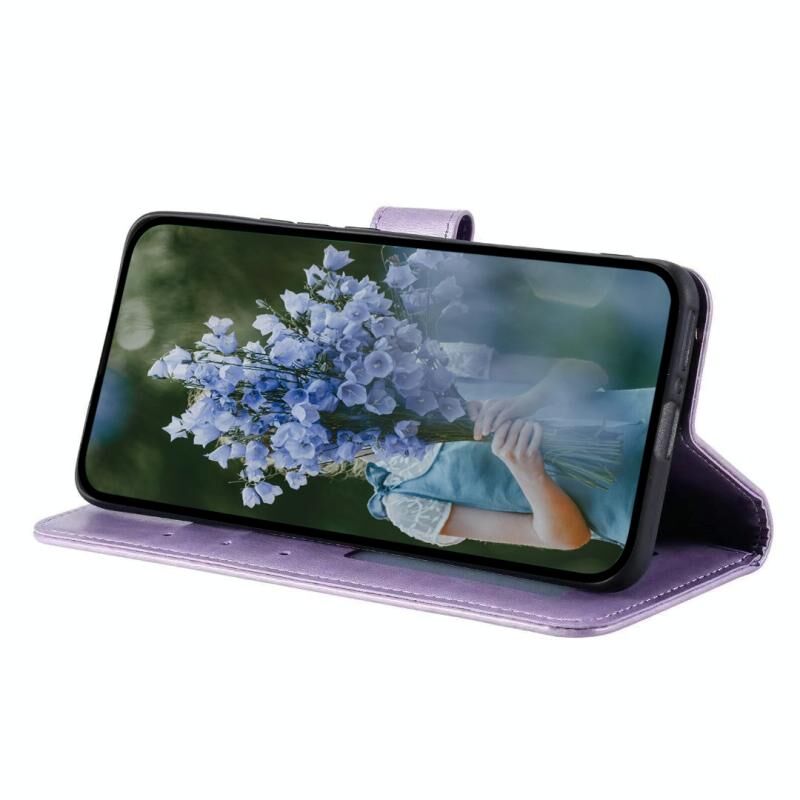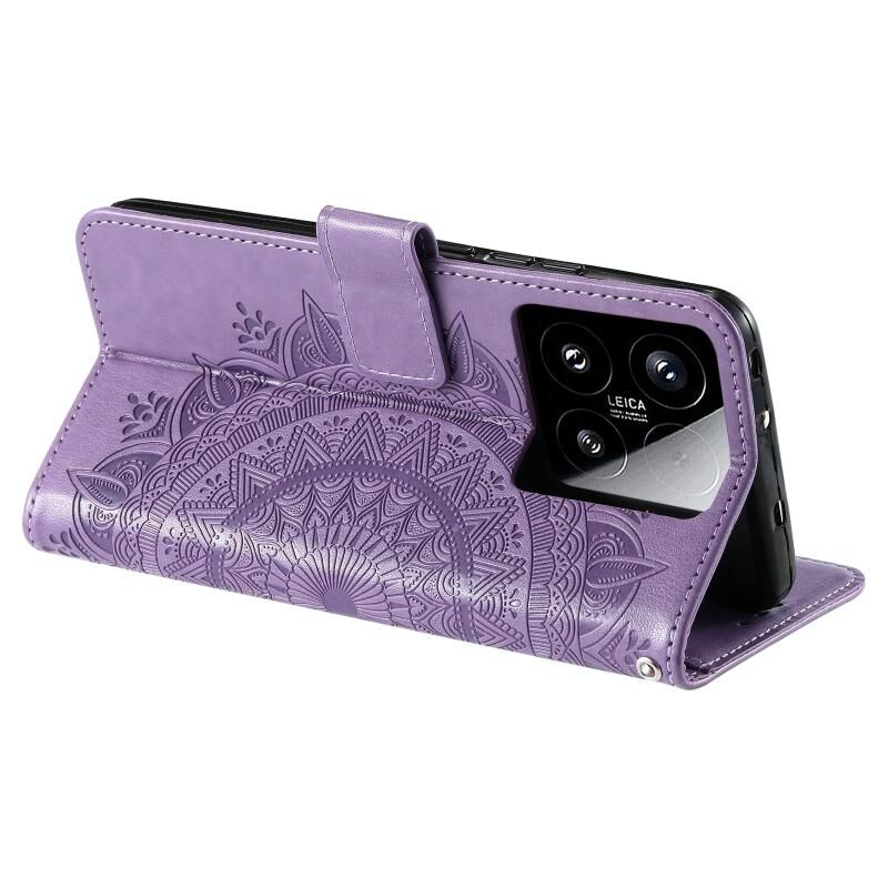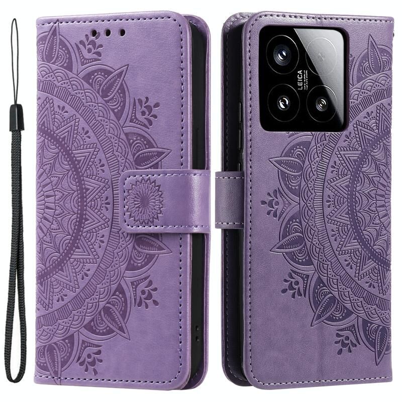 Για Xiaomi 15 Totem λουλούδι ανάγλυφο δερμάτινη θήκη τηλεφώνου με κορδόνι (μωβ)
