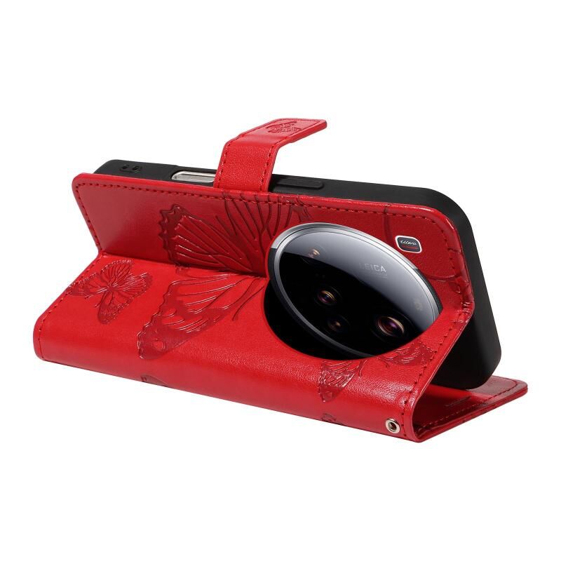 For Xiaomi 15 Ultra 5G Global 3D Butterfly Embossed Pattern Flip Leather Phone Case(Red)