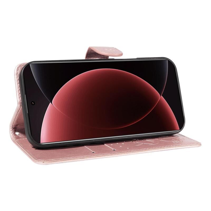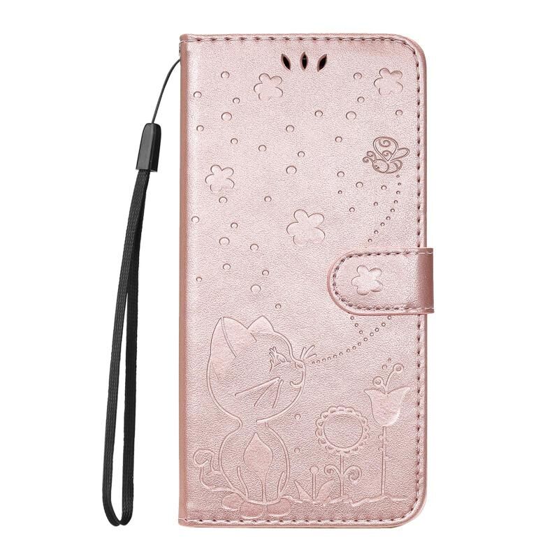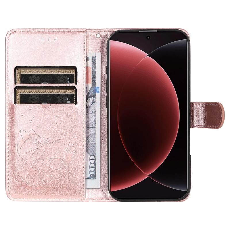 For Xiaomi 15 Ultra 5G Global Cat and Bee Embossed Flip Leather Phone Case(Rose Gold)