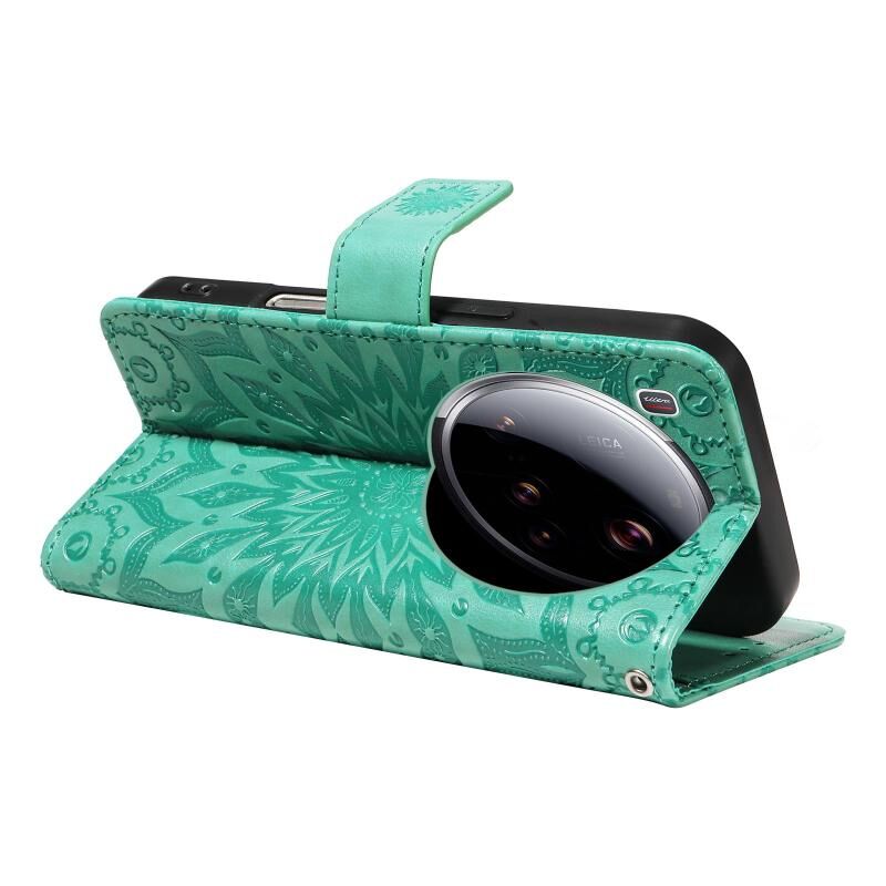 For Xiaomi 15 Ultra 5G Global Embossed Sunflower Pattern Flip Leather Phone Case(Green)