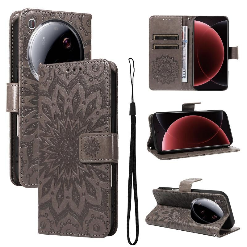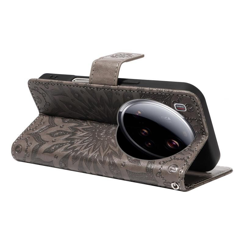 For Xiaomi 15 Ultra 5G Global Embossed Sunflower Pattern Flip Leather Phone Case(Grey)