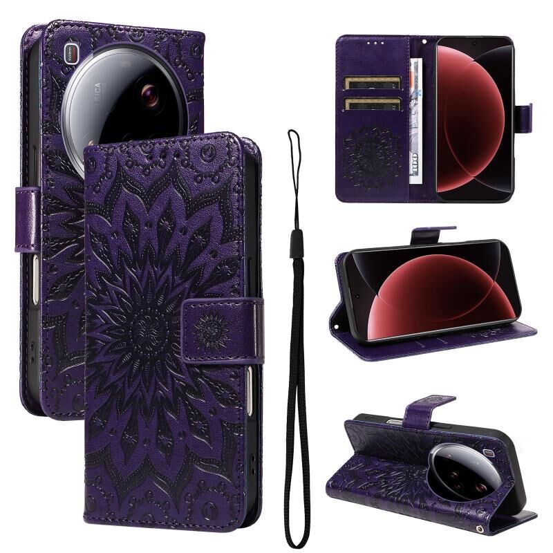 For Xiaomi 15 Ultra 5G Global Embossed Sunflower Pattern Flip Leather Phone Case(Purple)