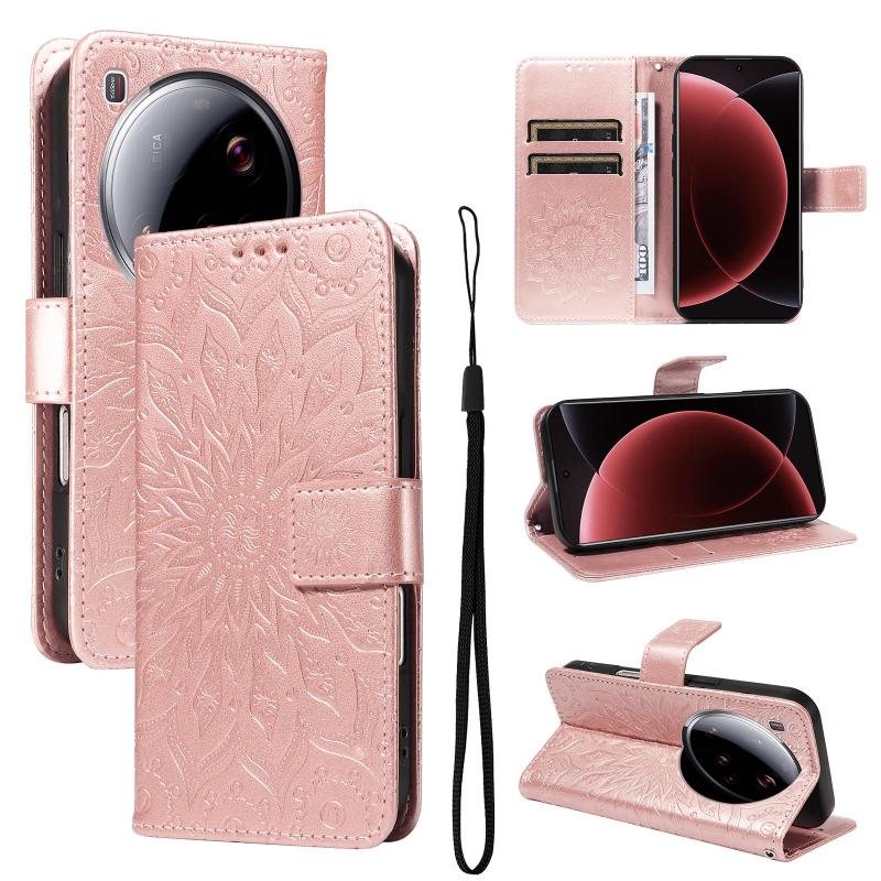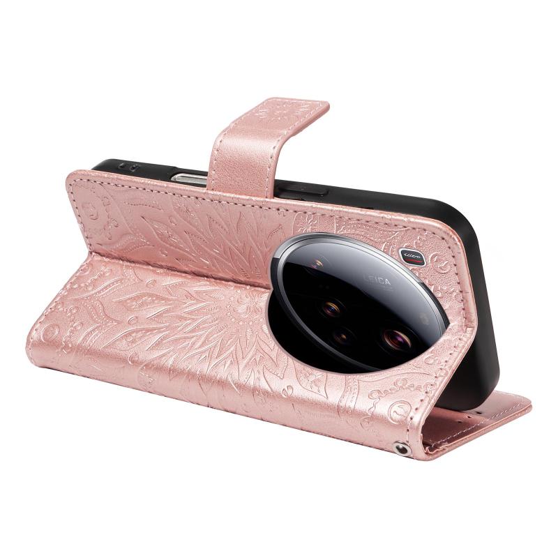 For Xiaomi 15 Ultra 5G Global Embossed Sunflower Pattern Flip Leather Phone Case(Rose Gold)