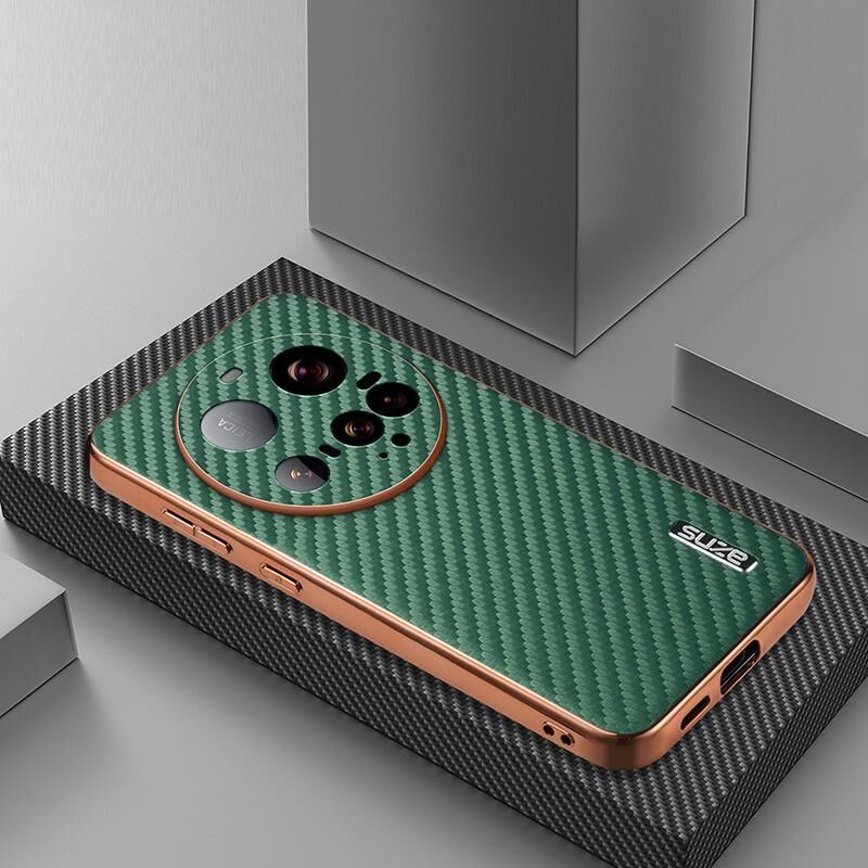 For Xiaomi 15 Ultra AZNS Electroplated Edge Carbon Fiber Texture Phone Case(Green) (AZNS)