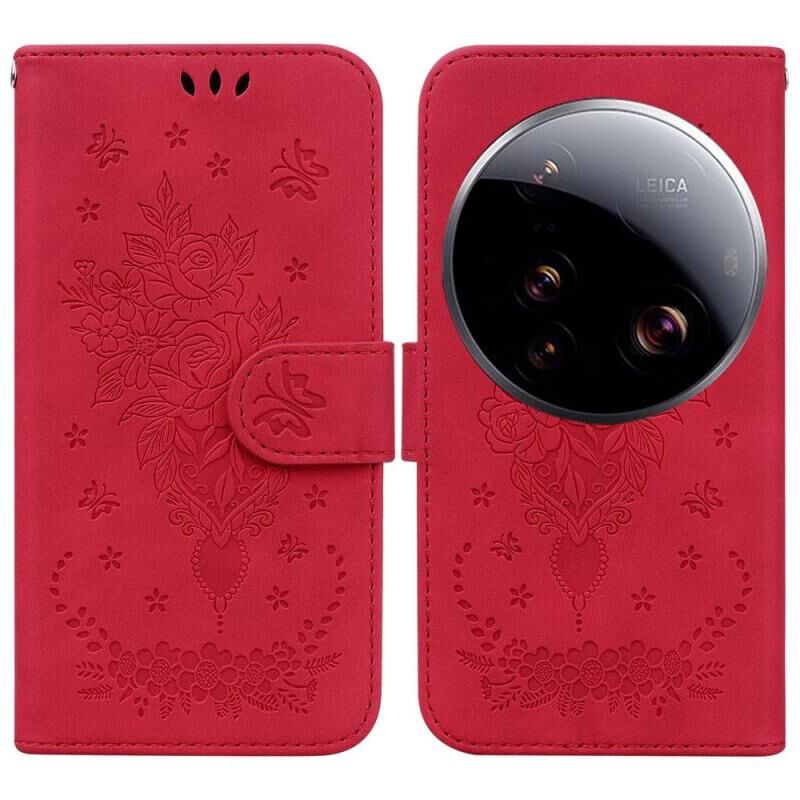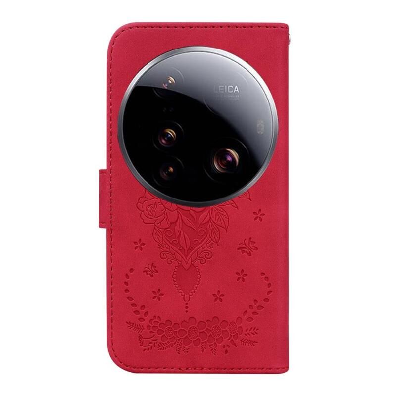 For Xiaomi 15 Ultra Butterfly Rose Embossed Leather Phone Case(Red)