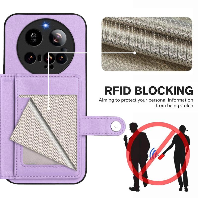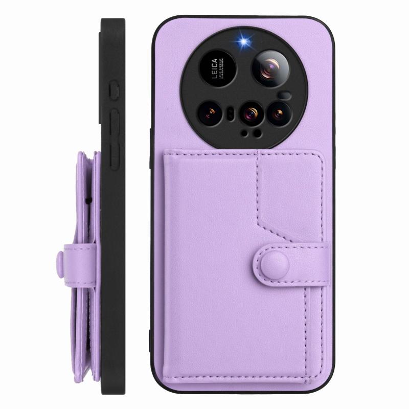 For Xiaomi 15 Ultra Button Card Bag RFID Anti-theft Phone Case(Purple)